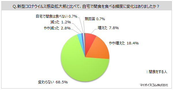 マイボイスコム株式会社(東京都千代田区、代表取締役社長:高井和久)は、7回目となる『間食』に関するインターネット調査を2022年6月1日~5日に実施しました。調査結果をお知らせします。