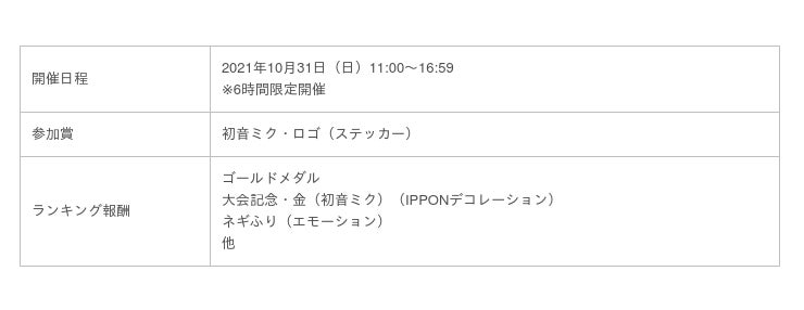 なお、「初音ミク」らバーチャル・シンガーたちとのコラボイベントは、2021年11月8日(月)まで開催中です。この機会にコラボアイテムを手に入れて大会に挑みましょう。