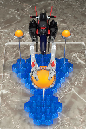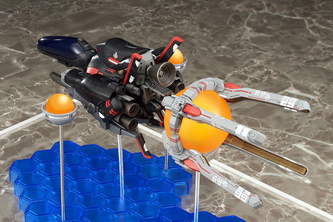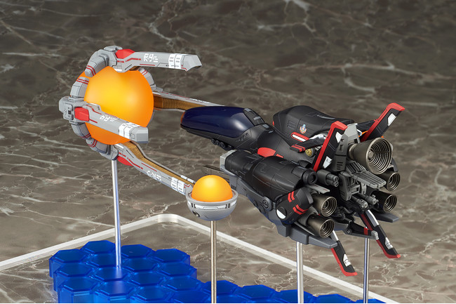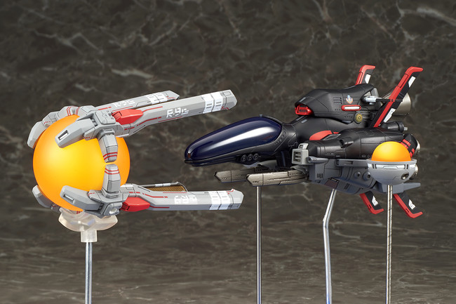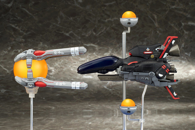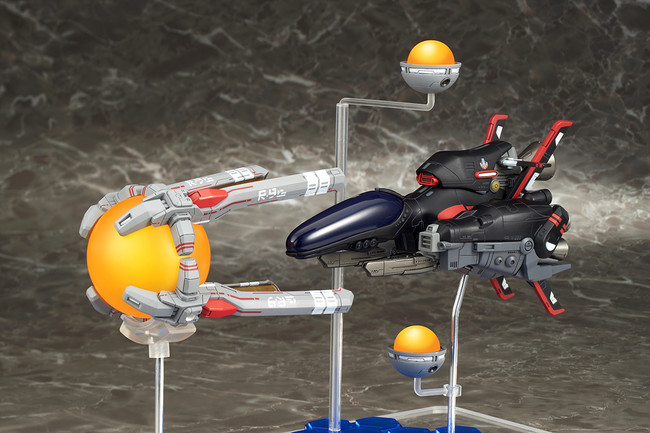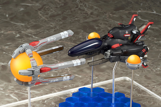 名作シューティングゲーム「R-TYPE」シリーズから、異層次元戦闘機 R-9A ARROW HEAD “アロー・ヘッド”にイベント限定カラー版が登場! 黒色の特殊塗料により回避率がアップした、スペシャルバージョンのモデル化です。通常版と同様にスタンダードフォース、ラウンドビットを備え、台座の配置と支柱の差し替えにより、劇中での様々なレイアウトを再現可能。独特の形状のラウンドキャノピーは脱着可能で、複座式のコクピットをご覧いただけます。