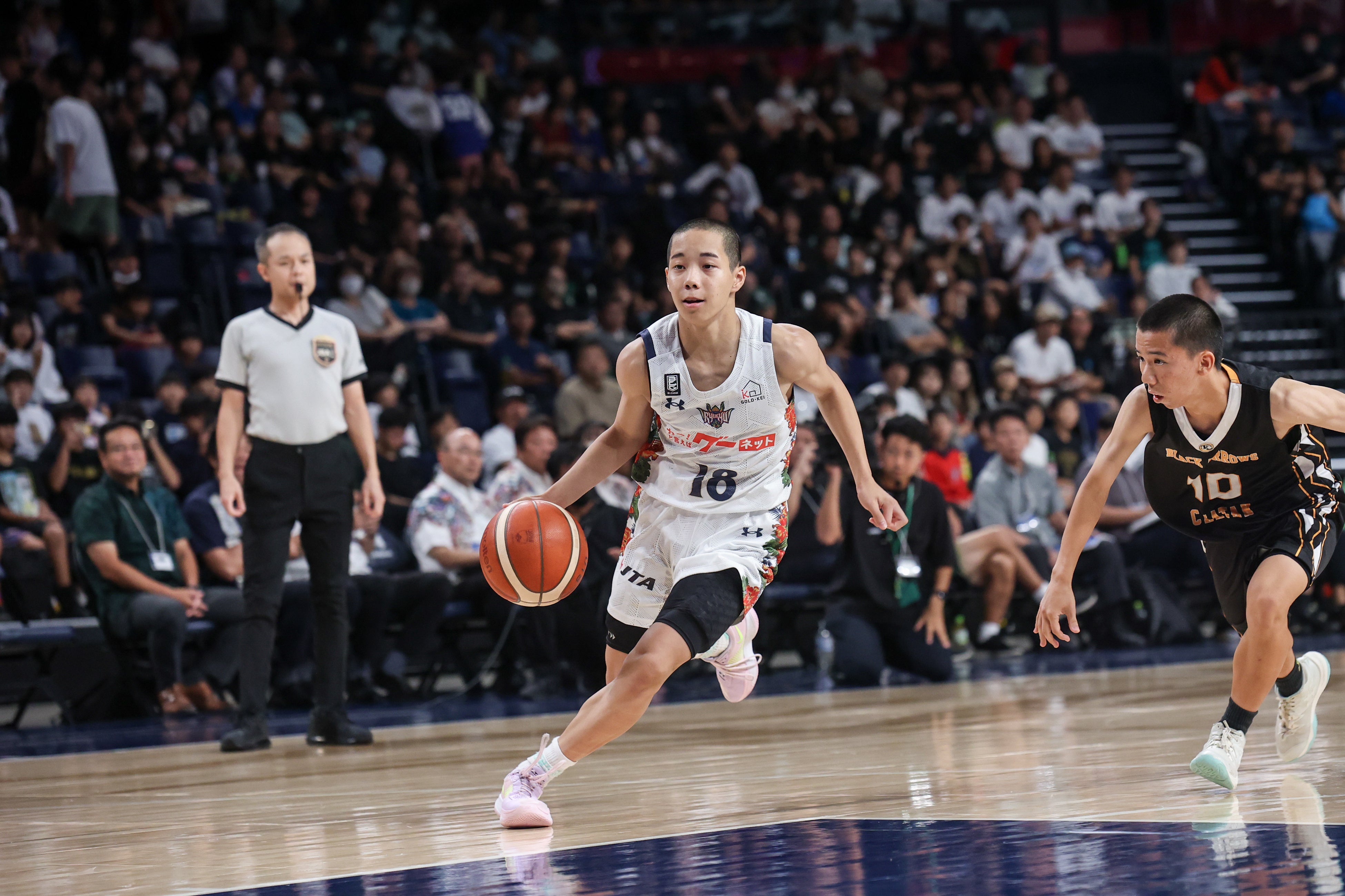 10月におけるU15のハイライトはJr.ウインターカップ沖縄県予選会の決勝です。チーム力の高い北谷中学校を相手に、試合開始からエースガードの#18 宮城昊河選手を中心に高い位置から激しいプレッシャーを仕掛け、流れをつかみます。チーム全員がディフェンス強度を高く保ち、速攻やドライブ、キックアウトからの3Pシュートなど多彩な得点パターンを見せ、チームが掲げる“超高速バスケ”を体現。ベンチに入った15人全員が得点を挙げ、101-36で勝利しました。