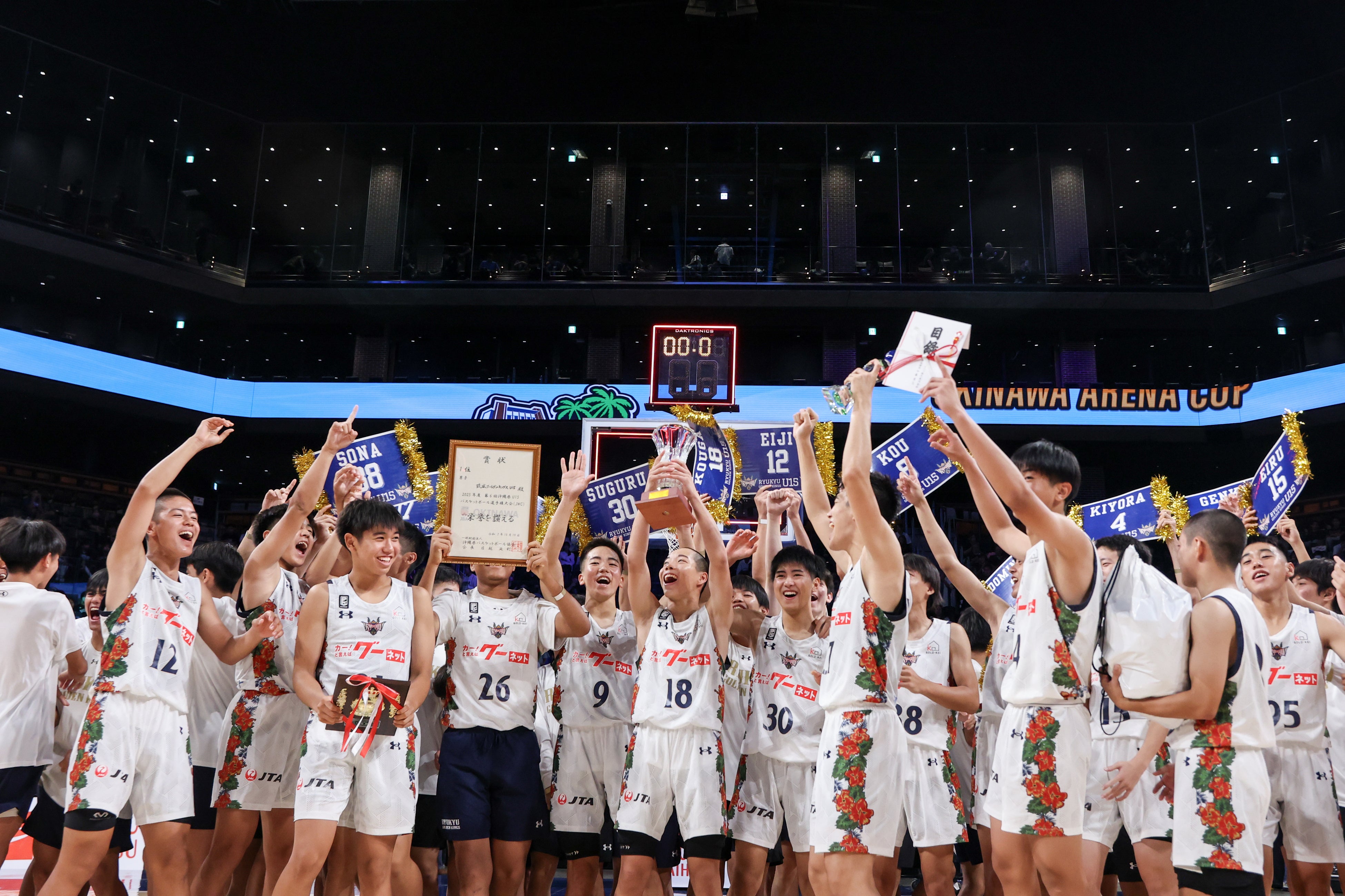 キングスU15は第4回沖縄アリーナカップの2日目にあった「2025年度 第6回沖縄県U15バスケットボール選手権大会兼Jr.ウインターカップ 第6回全国U15バスケットボール選手権 沖縄県予選会」の決勝で北谷中学校に勝利し、6連覇を達成しました。チームが掲げる「超高速バスケ」を体現し、ベンチ入りした15人全員が得点。同時に、来年1月に開かれる全国大会のJr.ウインターカップに向けた改善点も確認することができました。末広朋也ヘッドコーチ、エースガードの#18 宮城昊河選手、外のシュートを得意とする#30 仲松優選手に話を聞きました。