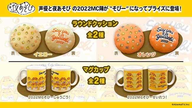 声優と夜あそびの番組公式キャラクターである「そびー」が14名の出演声優ver.となりプライズ商品として登場し、2023年2月より全国のゲームセンターにて順次展開いたします。