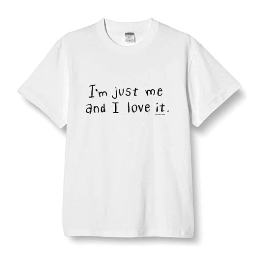 西さん直筆の文字「I'm just me and I love it.」をプリントしています。