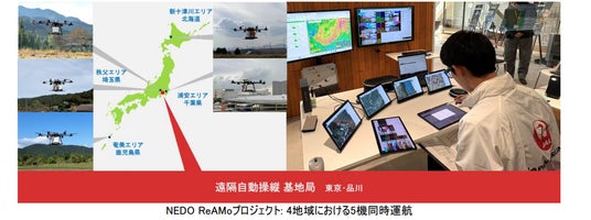 2024年11月15日プレスリリース 遠隔操縦者 1 人が全国 4 地点のドローン 5 機体同時運航に成功