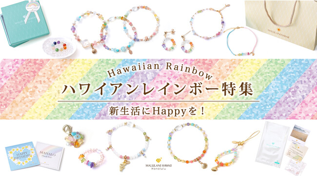 幸運を運ぶハワイのレインボーをイメージした鮮やかな虹色のパワーストーンアイテムが勢揃いした「ハワイアンレインボー特集」が、幸運をもたらすと評判のハワイ発ジュエリーブランド「マルラニハワイ」でスタート。