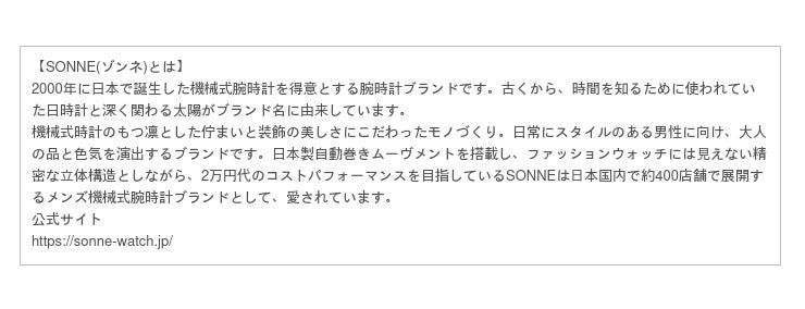 2000年に誕生し、今年で23年の歴史を誇る日本生まれの腕時計専門ブランド『SONNE(ゾンネ)』は、商品のクオリティとコストパフォーマンスが魅力の腕時計ブランドです。