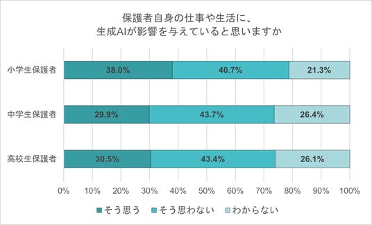 保護者自身の仕事や生活に与える影響については、小学生保護者・中学生保護者・高校生保護者とも「そう思わない」が「そう思う」よりも多い傾向だった。