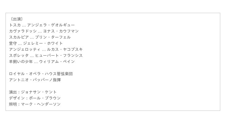 英国ロイヤル・オペラ《トスカ》 情報サイト