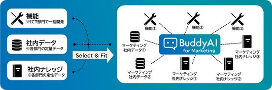 ※3 「Select & Fit」構想:各部門が、ICT部門が開発した追加機能の中から必要な機能を選び、自部門の社内データ・社内ナレッジなどを組み合わせて 「BuddyAI for X」に搭載し、部門別特化を強めていく構想
