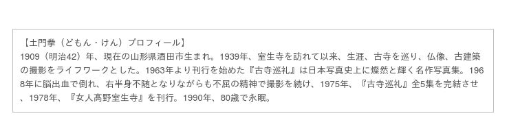 ※ 土門拳の「拳」の正字はコンピュータ上では表記できません。あらかじめご諒解ください。
