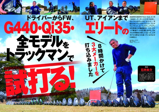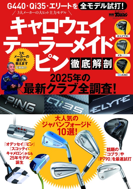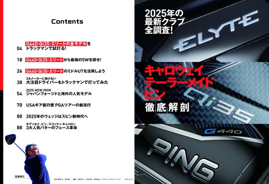 最新モデルのクラブをいち早く試打して詳細に徹底分析することで人気の、春のギア・ムック。今年のタイトルは「キャロウエイ、テーラーメイド、ピン徹底解剖 2025の最新クラブ全調査」。2025モデルのQi35、エリート、そしてG440の全モデルの試打インプレッションとクラブの性格がわかるカタログがいざ買おうとするときに本当に役に立つ。試打職人とも言われる石井良介プロのコメントもクラブの特徴をしっかり捉えている。ドライバーからユーテリティ、アイアン、ウエッジ、そしてパターまで気になるモデルをすべて網羅しているから、この1冊があればショップで迷うことなく自分にジャストフィットするクラブ選びができる!