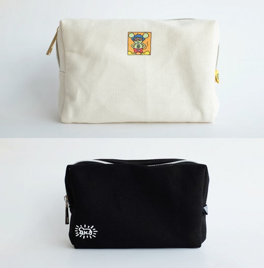 全2種。《アンディ・マウス》と《イコンズ》のワンポイントが可愛い、展覧会オリジナルポーチ。コスメはもちろん、充電器なども入るよう少し大きめのサイズ感にこだわりました。