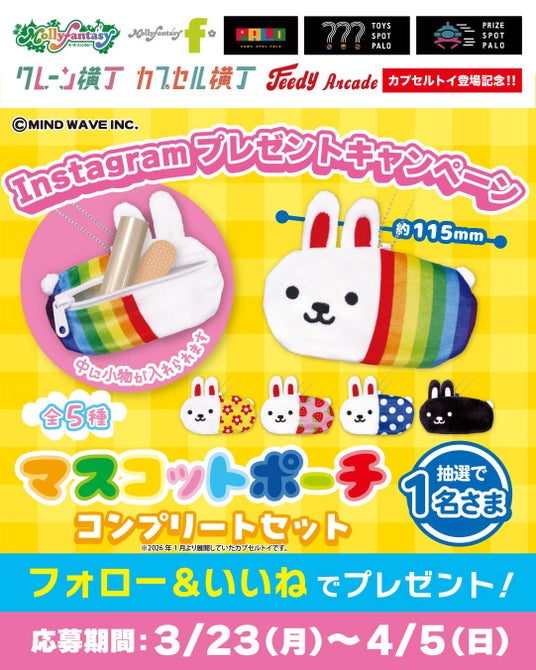 また、限定カプセルトイ用商品の展開を記念し、モーリーファンタジー公式X・Instagram で「ウサコレマスコットポーチ コンプリートセット」が当たるプレゼントキャンペーンを開催いたします。