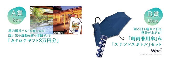 ●B賞:大人気レイングッズブランドWpc.「晴雨兼用折り畳み傘」と「ステンレスボトル」セット 10名様