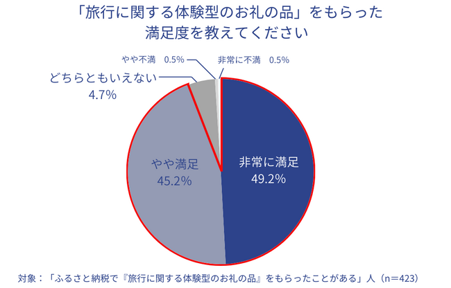 「旅行に関する体験型のお礼の品」に対し満足と答えた人の割合は9割以上