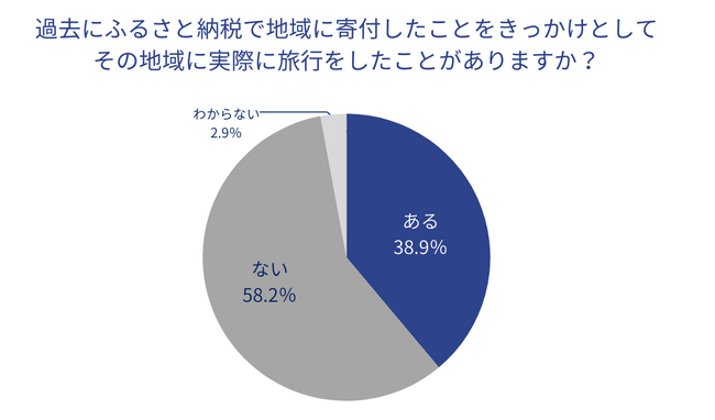 ◆ 過去にふるさと納税で寄付したことがきっかけで、その地域に実際に旅行したことがある人の割合は38.9%。最も多い理由は「お礼の品でもらった食べ物を現地で味わいたかったから」が47.8%、「ふるさと納税をきっかけに愛着がわいたから」が37.6%。