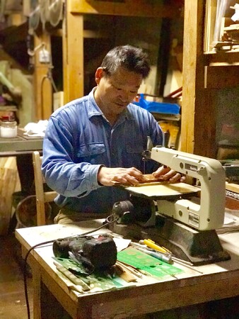 着色しない天然木の表情豊かな木目、美しい色合いに魅せられ、独学で木象嵌(もくぞうがん)を学んだ小森谷徹。