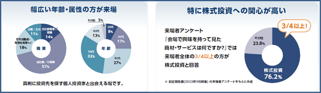 多くの意見や要望を受け、来年2024年は9月の関西展に加え、7月の東京 夏展でもIR・株式投資フェアの開催が決定した。