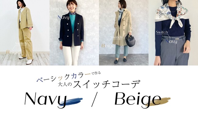 暖かな陽気が待ち遠しい、冬から春の季節の変わり目。何を着ようか迷ってしまうこの時期には、いつでも頼れるベーシックカラーがおすすめ!今回はネイビー、ベージュの2色をピックアップして春に向けてのスイッチコーデをご紹介いたします。