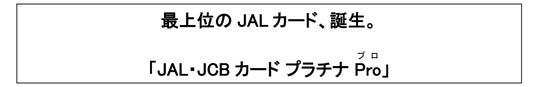 JALグループとJCBは、「プラチナ Pro」をはじめとした「JAL・JCBカード」がお客さまに選ばれ喜ばれるカードとなるよう、これからもさまざまなサービスをご提供してまいります。