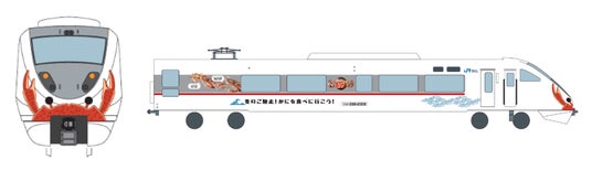 JR西日本では、株式会社日本旅行と連携して発売している「かにカニ日帰りエクスプレス(往復JR特急指定席+かに料理のセット)」のご利用開始に合わせて、かにをデザインした特急ラッピング列車を運行します。ぜひこの冬は、列車に乗って冬のご馳走「かに」を食べに魅力あふれる北近畿へお越しください。