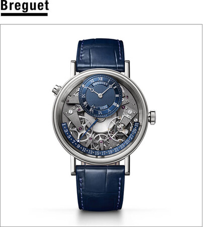 「ブレゲ」トラディション レトログラード デイト 7597 5,313,000円 【2022新作】ムーブメント:自動巻き、レトログラード式/日付表示/防水性能:3気圧/ケース素材:18金ホワイトゴールド/文字盤:18金ブルー仕上げ、手彫りギョーシェ模様/ケースサイズ:径40mm/ストラップ:アリゲーター〈型番:7597BBGY9WU〉