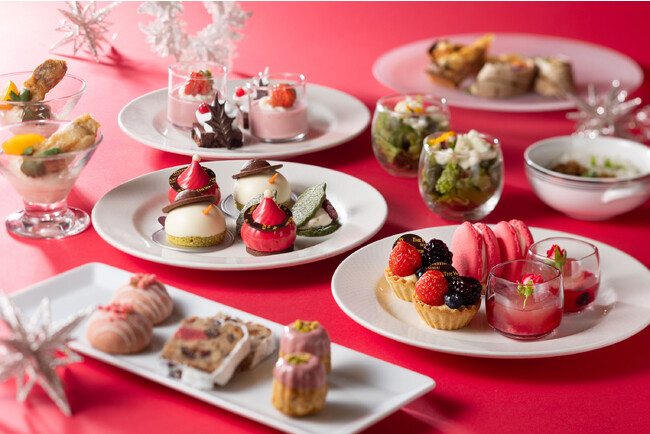 11月11日(土)より始まる第一弾『SWEET SENSATION(スイート センセーション) ~Happy Holidays(ハッピー ホリデーズ)~』は、クリスマスに向けてはやる気持ちを込めたオーナメント型のいちごスイーツをラインナップ。スノーマンに見立てたなめらかなホワイトチョコレートのムースや、キャンドルをモチーフにした上品ないちごのブランマンジェ、クリスマスリースをイメージした甘い香りのベリーのタルト。そのほか、いちご餡とクリームチーズをパイ生地で包みカヌレの形に焼き上げた進化系スイーツのパヌレや、いちごの生地にプラリネをトッピングしたスコーンやセイボリーなどが並びます。ウイークエンド限定のスペシャリテには、デザートの女王と称される「ジュビレ」をご用意。熱々のいちごソースとバニラアイスクリームが絶妙な味わいです。