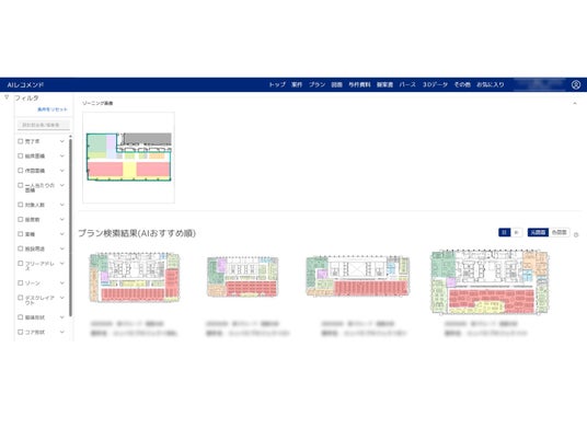 「ゾーニングシステム」の過去図面AI類似検索機能の操作画面
