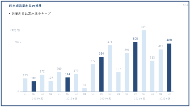 四半期営業利益の推移においては、様々な先行投資を吸収してなお高水準をキープしております。