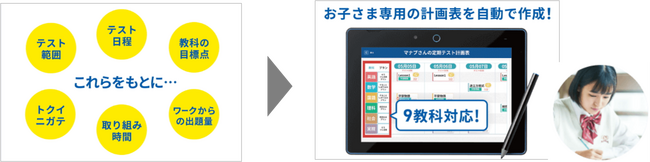 「進研ゼミ中学講座」は、一人ひとりのテスト日程や目標、取り組み時間に合わせて、専用の学習プランを自動で生成。「上手な勉強の仕方がわからない」と感じるお子さまでも迷うことなく学習に取り組める講座設計。自分のペースで学びながらも、1回1回のテストの本番で確実に結果を出し、志望校合格につなげられる教材にこだわり続けています。