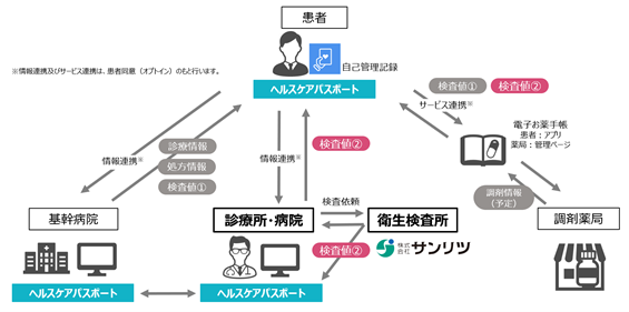 そこでTISは、本連携により、サンリツに臨床検査を依頼している診療所や病院と患者をヘルスケアパスポートでつなぎ、患者へのスムーズな検査結果の連携を実現します。また、アプリ上で患者と診療所や病院のやり取りが実現されることで、診療所や病院の事務負担の軽減にも繋がります。さらに、こうした医療・健康に関する情報が患者自身へ還元されることで、生涯にわたり、患者の手元で情報を管理できるようになり、患者自身の理解や健康への意識が高まる効果が期待されます。