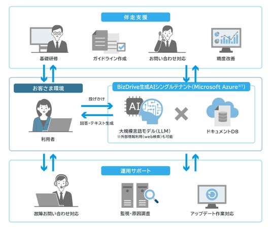 NTT東日本株式会社(以下、NTT東日本)は、お客さま環境への生成AI構築・導入から伴走支援※1までを一貫して支援する「BizDrive生成AIシングルテナント」※2(以下、本ソリューション)の提供を2025年10月1日(水)より開始します。