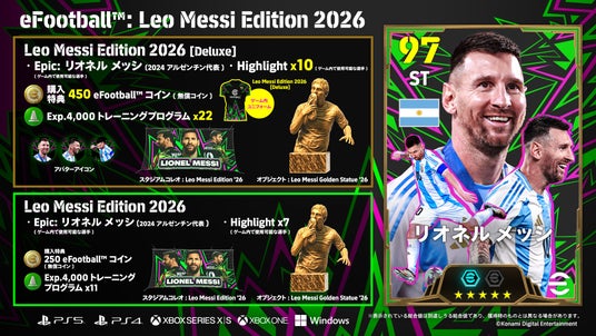 この機会に『eFootball(TM)』を始める方にもおすすめな、リオネル メッシ選手とラミネ ヤマル選手のアンバサダーエディション/パックなども新たに登場!
