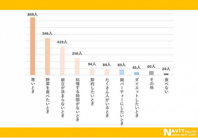 質問:鍋が食べたくなるのはどんな時ですか? (複数回答可)(回答数:2454)(対象:1,000名)
