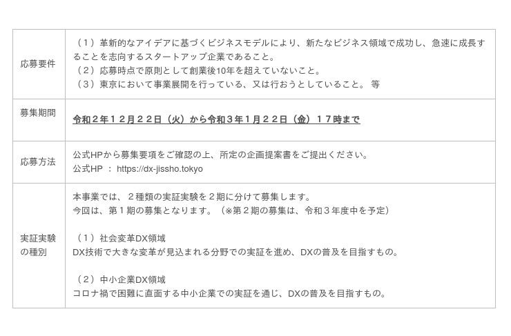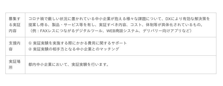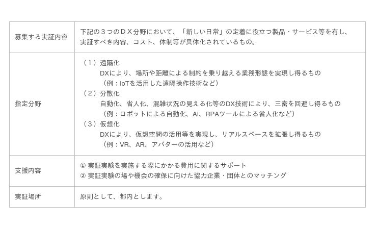 東京都は、「新しい日常」が定着した社会の実現に向け、デジタル・トランスフォーメーション(DX)の普及に向けた「DX推進実証実験プロジェクト」を今年度より開始いたします。
