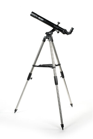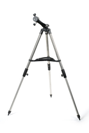 三脚は安定感のある伸縮式のステンレス製三脚を採用。お好みの高さに変更する事ができますので、楽な姿勢で観測できます。三脚ステーには標準でアクセサリートレイが付属していますので、接眼レンズなどを置くことができ夜間の観察時などにも便利です。