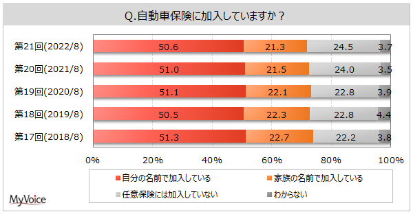 マイボイスコム株式会社(東京都千代田区、代表取締役社長:高井和久)は、21回目となる『自動車保険の利用』に関するインターネット調査を2022年8月1日~5日に実施しました。本調査の自動車保険は、任意で加入するもの(任意保険)を対象としています。調査結果をお知らせします。