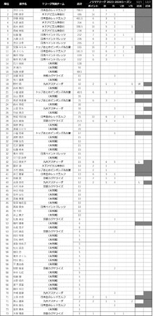 ※対象となる日程内にて消化試合数が異なる為、女子10試合、男子は14試合がポイント対象となります。