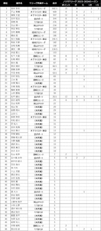 ノジマTリーグ 2023-2024シーズンにおける、「2024パリオリンピックシングルス選考ポイント 」の獲得状況をお知らせします。(ノジマTリーグ 2023-2024シーズン公式戦 12/2開催試合終了時)