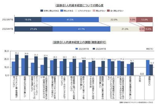 【人的資本経営への関心度】 人的資本経営への関心層が増加して7割に近づく、コミュニケーション活性化による課題解決を重視