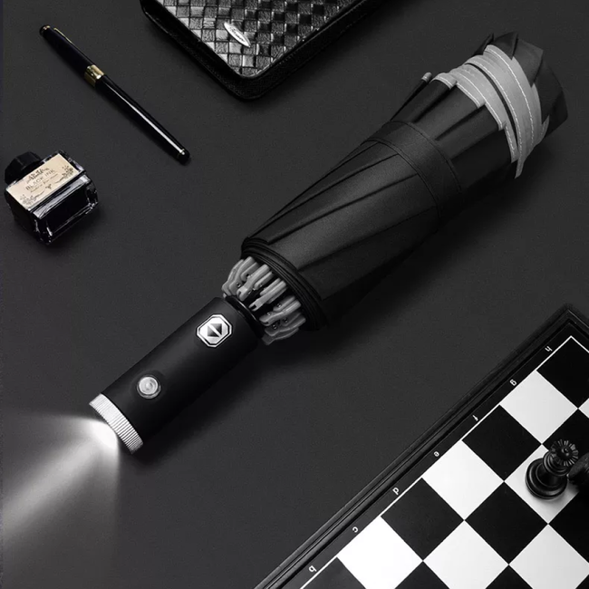 夜の雨でも安心!LEDライト付き折りたたみ傘GeeBrella