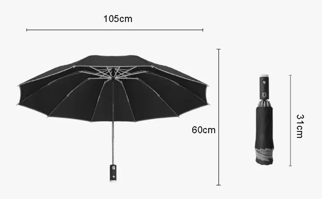 自動開閉式のため、面倒な操作もワンタッチで解決します。また逆折り式なので、傘を折りたたむとき濡れる心配はありません。