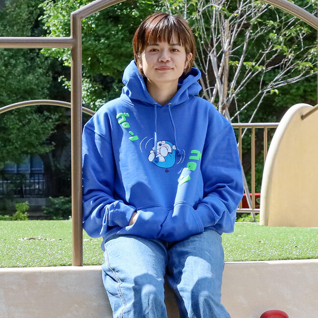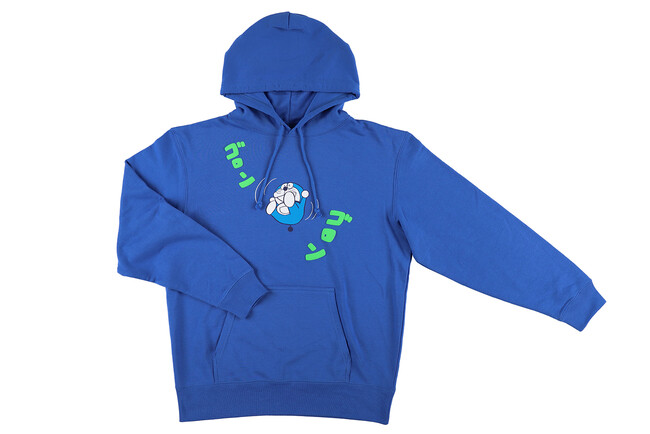 トレーナーと同じく、男女問わずユニセックスに着用いただける、オーバーサイズのゆったりとしたパーカーです。ドラえもんをイメージしたブルーのカラーに、前面にはゴロンゴロンと転がるドラえもんと、ぷっくりとした発泡プリントで効果音が表現された、遊び心溢れるポップなデザインです。綿素材で通気性に優れ、一年間を通して快適に着用いただけます。肌寒くなるこれからの季節にカジュアルファッションとして、おうちでのリラックスウェアとしてもおすすめです。