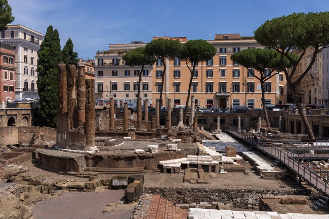 1926年から1929年にかけて、テアトロ アルジェンティーナ通り、フロリダ通り、S.ニコラ・デ・チェザリーニ通り、ヴィットリオ・エマヌエーレ二世通りを結ぶ地区で、新しい建物の建設に伴う解体工事により、広大な舗装された広場が発見されました。その上には4つの聖堂が建っており、確実な識別ができないため、一般にアルファベットの最初の4文字で呼ばれています。それらは、フェロニアに捧げられたといわれている聖堂C(建立 紀元前3世紀初頭)、ユトゥルナに捧げられた聖堂A(建立紀元前3世紀半ば)、ニンフまたはラリ・ペルマリーニに捧げられた聖堂D(建立紀元前2世紀初頭)、フォルトゥナに捧げられた聖堂B(建立紀元前2世紀末)と言われています。聖地に隣接するポルティチ・ディ・ポンペオの複合施設は紀元前1世紀中頃のものであり、クリアと呼ばれる聖堂Bと聖堂Cの背後にある石灰華の土台でユリウス・カエサルが暗殺されたと言われています。