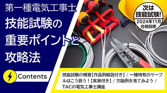 電気工事士試験対策講座を展開しているTAC株式会社(東京都千代田区、代表取締役:多田敏男)は10/6(日)に実施される『令和6年度上期 第一種電気工事士試験』の難易度分析や講評、解法などを解説する試験講評を、10/10(木)にTACのWebサイトで公開いたします。さらに!11月技能試験攻略のポイントを実演を交えてお伝えするWebセミナーを公開中です。