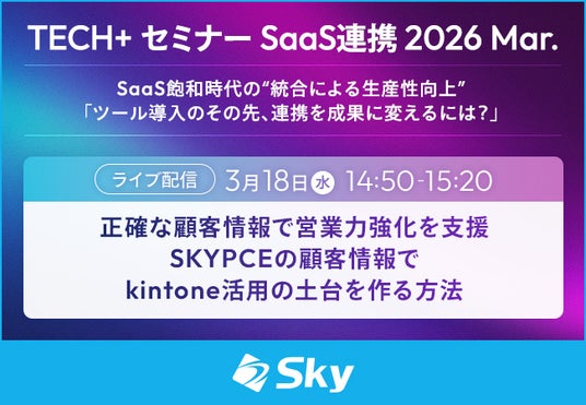 Sky株式会社は、2026年3月18日(水)にオンラインで開催される、セミナーイベント「TECH+ セミナー SaaS連携 2026 Mar.」に協賛いたします。