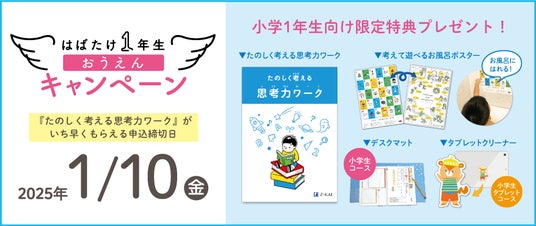 申込受付の開始と同時に、お申し込み時期や受講コースに応じた期間限定特典を差し上げる「はばたけ1年生おうえんキャンペーン」も実施中!