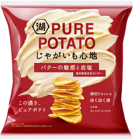 株式会社湖池屋(本社:板橋区/社長:佐藤章)は、じゃがいもの濃い味わいと特有のホクホク感がご好評をいただいている「PURE POTATO じゃがいも心地」ブランドより、富良野産生乳のバターを使用した、この時期だけの特別な味わい「じゃがいも心地 バターの魅惑と岩塩」を2022年12月12日(月)から全国・全チャネルにて発売します。