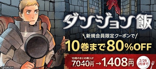 ■新規会員限定クーポンで『ダンジョン飯』1~10巻が80%OFF