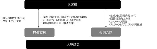 『たよれーるneoAI Chat mini』ご利用のお客様には、大塚商会の専門チームがサポートを行います。また、本サービスの導入および生成AI導入の各フェーズで大塚商会がトータルで支援します。